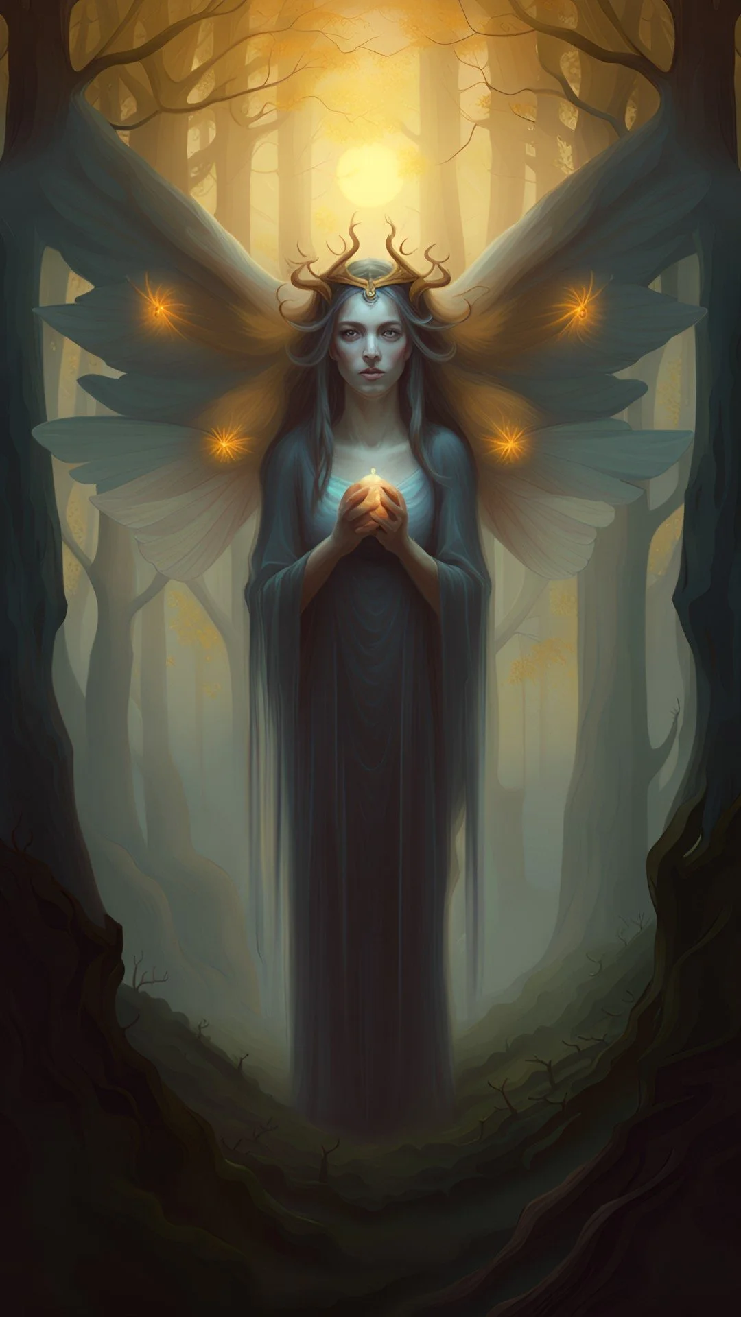 They don’t come when I call them. They arrive on their own terms, in that thin slice of night when the world forgets how to sleep and my mind refuses to. The sky turns the color of a healing bruise, and something in the air tightens — a pressure behind my eyes, a shimmer at the edge of the trees. That’s when this family steps out of the dark: the elder crowned in wings and ember light, the double-faced watcher, the silent ones with lanterns burning in their chests. They never speak, but I feel the weight of their attention, like they’re deciding whether I’ve earned another glimpse.